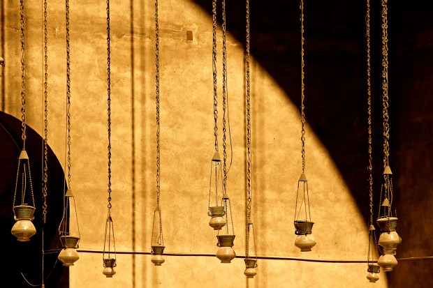 Beautiful lamps hanging inside the mosque